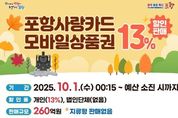 (원투원뉴스) 포항시는 추석 명절 지역경제 활력 제고를 위해 내달 1일부터 카드형·모바일 포항사랑상품권(이하 포항사랑카드)을 260억 원 규모로 13% 할인 판매한다. 시는 지난 9일 발행한 600억 원 규모 상품권이 완판됨에 따라, 내달에도 13% 할인 판매를 통해 시민과 소상공인들에게 직접적인 혜택을 제공하고, 지역 골목상권 소비 촉진의 마중물 효과를 이어가겠다는 방침이다. 올해 포항시는 당초 목표보다 500억 원 확대한 총 3,000억 원 규모의 상품권을 발행한다. 연말까지 매월 초 상품권을 발행하며 13% 할인율을 유지해 지역 자금 역외 유출을 막고 소상공인 매출 증대, 지역경제 선순환 구조 강화에 기여할 계획이다. 개인별 구매 한도는 월 50만 원, 보유 한도는 100만 원으로 조정된다. 개인을 대상으로만 할인하고, 지류형은 판매하지 않는다. 상품권은 10월 1일 0시 15분부터 모바일 앱 ‘iM샵’에서 충전할 수 있으며, 104개 판매대행 금융기관 영업점에서도 영업시간 내 충전이 가능하다. 포항사랑카드는 실물카드 결제 외에도 ▲삼성페이 ▲네이버페이 QR결제 ▲모
