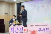 (원투원뉴스) 인천 서구는 지난 30일 저녁 서구청 대회의실에서 검암경서동, 연희동 주민 약 160여 명과 함께 ‘퇴근길 톡! Talk! 콘서트’를 열고 서구의 미래 비전을 공유했다. ‘퇴근길 톡! Talk! 콘서트’는 평소 구정 참여가 어려운 직장인들을 위해 야간 시간대에 진행되는 주민 소통 행사로, 강범석 구청장은 2023년 청라 권역, 2024년 검단 권역, 2025년 8월 가정‧신현원창‧석남‧가좌 권역 그리고 9월 검암경서‧연희 권역까지 모든 권역 구민과 직접 만나는 소통의 여정을 완성했다. 이번 검암경서‧연희 권역 행사에서 강범석 구청장은 교통, 경제, 문화 등 구정 전반과 검암역세권 공공주택지구 개발, 공촌동 신개념 실내체육관 건립, 2026년 행정체제개편 계획 등 주요 사업을 쉽게 풀어 설명하며 주민들의 관심을 집중시켰다. 이어진 구민과의 대화 시간에는 “문화활동 지원에도 힘써달라”, “육아에 대한 아낌없는 지원을 바란다” 등 여러 의견이 이어졌다. 구청장은 주민의 목소리에 귀 기울이고 현황을 답변하며 구민들의 궁금증을 해소했다. 한편 이번 행사에는 유관기관인 인천도시공사 관계자가