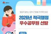 (원투원뉴스) 김천시는 행정서비스 향상과 공익 증진, 사회문제 해결을 위해 2026년도 적극행정 우수공무원을 선발한다고 밝혔다. 시는 지난해에 이어 올해에도 적극적으로 일하는 공직문화를 지속적으로 조성하기 위해 연중 개인 16명, 팀 6팀을 선발할 계획이며, 지난해보다 포상금을 확대 마련해 적극행정에 대한 강한 의지를 드러냈다. 특히, 올해에는 적극행정 우수공무원 추천 기간을 연중 상시로 열어두어 특정 시기에 정해진 업무를 처리하는 것에서 벗어나 담당자가 주도적으로 업무를 추진할 수 있도록 장려한다. 동시에 시민들도 일상에서 변화를 체감할 때마다 적극행정 우수사례를 김천시 기획예산실로 추천할 수 있다. 추천된 사례는 사전심사 및 시민 투표를 거친 후, 인사위원회 심의·의결을 통해 최종 우수사례가 선정된다. 우수공무원으로 선발 시 특별승급, 성과상여금 최고등급의 인사상 우대 조치와 포상금, 포상휴가 등 인센티브가 지급될 예정이다. 배낙호 김천시장은 “김천시는 행정 효율을 높이기 위해 올해 1월 1일 자로 조직개편을 단행했다. 이와 함께 이번 적극행정 우수공무원 선발 등을 통해 모든 공직자가 적극적으로