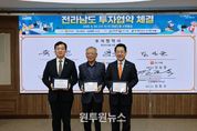 (원투원뉴스) 영암군에 534억원 투자, 140명 고용 규모의 2개 수산식품 기업이 들어선다. 24일 전라남도청에서 전라남도와 영암군이, ㈜해진수산, ㈜해진식품과 투자협약을 체결하고 협력을 약속했다. 이날 협약에 따라 ㈜해진수산은 332억원을 투자해 영암군 삼호읍에 마른김 생산시설을 조성하고, 80여 명을 고용할 예정이다. ㈜해진식품도 같은 지역에 202억원을 투자해 조미김 생산시설을 구축하고 60여 명의 일자리를 창출할 계획이다. 영암군은 인·허가 신속 처리, 기반시설 확충 등 행정 지원으로 이번 협약을 뒷받침하고, 지역·기업 상생모델로 지역경제 활성화를 견인한다는 방침이다. 이날 투자협약에는 두 기업의 임한택 대표, 김영록 전라남도지사, 윤재광 영암군부군수 등이 함께 했다.