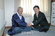 (원투원뉴스) 김광수 제주특별자치도교육감은 17일 설 명절을 맞아 제주 지역의 유일한 생존 독립유공자인 강태선 애국지사를 찾아 세배 인사를 드리고 깊은 감사의 마음을 전했다. 강태선 애국지사는 서귀포시 성산읍 출신으로 일제강점기인 1942년 19세의 나이에 일본으로 건너가 오사카를 중심으로 항일 독립운동 세력을 규합하고 독립 의식을 고취하는 활동을 펼치다 체포돼 옥고를 치르는 등 조국 독립의 뜻을 행동으로 실천한 인물이다. 이에 정부는 조국의 광복을 위해 헌신한 공로를 높이 평가해 1990년 건국훈장 애족장을 수여했으며 현재 강 지사는 제주 지역의 유일한 생존 독립유공자로서 제주의 독립운동사를 증언하는 살아있는 역사이자 지역사회의 큰 어른으로 존경받고 있다. 이날 방문에서 김 교육감은 강 지사의 건강과 평안을 기원하며 조국을 위해 헌신한 고귀한 삶에 깊은 존경의 뜻을 전했다. 아울러 독립운동 정신이 과거에 머무르지 않고 우리 사회와 미래 세대에게 이어지는 살아있는 가르침이 될 수 있도록 노력하겠다고 밝혔다. 김 교육감은 “지사님의 고귀한 삶과 정신은 우리 아이들에게 가장 큰 울림이자 소중한 교육