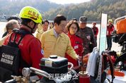 (원투원뉴스) 이재명 대통령은 6일 오후 강원도를 방문해 관·군의 산불 진화 장비와 대응체계를 점검한 뒤, 동해안 산불 위험 지역을 시찰했다. 이 대통령은 취임 직후부터 관계기관에 가용 가능한 자원을 총동원하는 등 강력한 산불 진압 초기 대응체계를 마련하라고 거듭 지시해 왔다. 이번 방문은 이러한 대통령 지시사항의 이행 상황을 직접 점검하기 위해 실시된 것이다. 이 대통령은 먼저 강원 원주시에 위치한 산림청 산림항공본부를 찾아 산림청과 군(軍)의 산불 진화 헬기, 드론, 차량 등 핵심 장비를 점검했다. 현장을 둘러본 이 대통령은 "산불이 발생했을 때 초기에 신속하게 대응할 수 있도록 현장의 1차 책임을 명확히 하라"고 지시했다. 또한 "산불 대응 관련 예산과 사업은 국민이 납득할 수 있도록 투명하고 효율적으로 운영하라"고 말하면서도, "산불 대응에 있어서는 '아깝다'고 생각하지 말고 초기부터 전력으로 대응하라"고 당부했다. 이어 이 대통령은 산림청과 국방부의 ‘산불 진화 합동훈련’을 참관했다. 훈련은 헬기 레펠을 이용한 공중 진화, 드론을 활용한 정밀 진화, 헬기 물 투하 등의 순서로 진행됐다. &