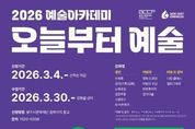 (원투원뉴스) (재)광주시문화재단은 광주시민의 문화향유 기회 확대와 예술 감수성 향상을 위해 2026년 예술아카데미 '오늘부터 예술' 수강생을 모집한다. 2026 예술아카데미는 성인 · 어린이 · 시니어 등 다양한 연령층의 수요를 반영 전통예술과 생활예술 디지털 창작을 아우르는 프로그램으로 구성했다. 특히 어린이 강좌는 가족 단위 참여 확대를 위해 ‘따로, 또 같이’ 운영 방식을 강화하여, 아이와 보호자가 함께 방문하여 각자 다른 공간에서 개별 수업을 수강할 수 있도록 운영한다.(※ 보호자 강좌는 수강료 없이 무료로 운영) 성인 강좌는 △수묵화(동양을 담아내는 수묵화) △성악(천상의 목소리, 성악) △궁중무용(전통의 아름다움 궁중무용) △노래교실(함께 부르는 노래교실) △스윙댄스(가볍게 한 스탭, 스윙댄스) △AI(AI 아트워크) 등으로 운영될 예정이다. 어린이 강좌는 △어린이 코딩(우리는 코딩예술가) △창의미술(미술로 마음껏) △명화 드로잉(작은 화가의 명화드로잉) △비트메이커 등으로 운영될 예정이다. 광주시문화재단 오세영 대표는 “예술아카데미 '오늘부터 예술'은 시민이 일상 속에서
