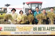 (원투원뉴스) 안성시농업기술센터는 9월 29일, 안성시 지역특화 벼 품종인 ‘수찬미’의 벼 베기 행사를 성황리에 개최했다. 이번 행사는 2025년부터 본격 보급된 ‘수찬미’를 널리 알리고, 기존 외래품종 ‘추청’을 대체할 대안으로 홍보하기 위해 마련됐다. 이번 행사에는 김보라 안성시장을 비롯해 안성시 및 경기도농업기술원 관계 공무원, 농협중앙회 안성시지부장, 지역농협 조합장 및 안성마춤농협 관계관, 안성시 농촌지도자 및 쌀연구회 회원, 벼 재배 농업인 등이 참석했다. 이날 김보라 시장은 직접 콤바인에 탑승해 수확 시연에 참여하며 농업인들의 노고를 격려하고 수확의 기쁨을 함께 나눴다. ‘수찬미’는 경기도농업기술원이 개발한 중생종 중간찰 벼로, 보람찰과 밀키퀸을 교배해 만들어졌다. 밥맛과 식감이 뛰어나고 수발아율이 낮아 기후변화에 대한 적응력도 높다. 특히 지난 55년간 안성지역 대표 품종으로 널리 재배되고 있는 추청벼가 2027년부터 보급종 공급이 중단될 예정이어서, ‘수찬미’가 안성시의 대체 품종으로 주목받고 있다. 김보라 시장은 “수찬미는 올해부터 500ha로 본격 도입되어 내년에는 재배면적을 1,700ha까
