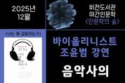 (원투원뉴스) 평택시립 비전도서관이 오는 12월 18일 저녁 7시 조윤범 바이올리니스트를 초청하여 ‘음악사의 하이라이트’를 주제로 야간 인문학 강연을 진행한다. ‘음악사의 하이라이트’는 방대한 서양 음악사의 흐름을 2시간으로 압축하여 마치 영화를 보듯 자연스럽게 이해할 수 있는 강연이다. 각 시대의 대표적인 사건과 음악적 변화를 통해 클래식을 깊이 있고 풍부하게 만날 소중한 기회가 될 것으로 기대된다. 조윤범 바이올리니스트는 콰르텟엑스의 리더이자 편곡자, 저자, 음악 해설가, 방송진행자로 '콰르텟엑스와 함께하는 조윤범의 파워클래식', CBS음악FM '아름다운 당신에게', KBS1TV '문화책갈피'의 '청바지를 입은 클래식', MBC라디오 '굿모닝FM'의 클래식 음악 코너, tvN '어쩌다 어른'에서 진행과 강연을 통해 클래식의 대중화에 앞장섰으며, 최근에는 EBS1 '나의 두 번째 교과서' 음악편에서 10강에 걸친 방송을 진행해 큰 호응을 얻고 있다. 지은 책으로는 '조윤범의 파워클래식 1, 2권', '나는 왜 감동하는가', '클래식 A-yo'가 있다.