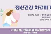 (원투원뉴스) 가평군정신건강복지센터는 정신질환 치료 과정에서 발생하는 병원비 부담을 덜어주기 위해 치료비 지원사업을 운영중이라고 3일 밝혔다. 치료비 지원사업은 연령대와 치료 상황에 따라 △마음건강케어 △청소년‧청년 마인드케어 △어르신 마인드케어 등 3개 유형으로 나뉜다. ‘마음건강케어’는 조현병, 우울‧불안 등 정신질환으로 진단받은 주민이 대상이다. 질병코드 F20~F48로 진단받고 정신건강복지센터에 등록된 기준 중위소득 120% 이하 주민이라면 신청할 수 있다. 본인부담금과 본인 일부부담금을 포함해 연간 최대 36만원의 치료비를 지원한다. ‘청소년‧청년 마인드케어’는 15세부터 34세(1991~2011년생)를 위한 사업이다. 질병코드 F20~F48로 진단받고 최근 5년 이내(2022~2026년) 처음 진단받은 경우 신청 가능하며, 본인 일부부담금에 대해 1인당 최대 36만원을 지원한다. ‘어르신 마인드케어’는 65세 이상(1961년 이전 출생) 주민을 대상으로 한다. 우울증 등 질병코드 F32~F39로 진단받은 경우 본인 일부부담금에 대해 1인당 최대 36만원까지 치료비를 지원한다.