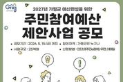 (원투원뉴스) 가평군은 2027년도 예산에 반영할 주민참여예산 제안사업 공모를 3일부터 오는 5월 15일까지 실시한다. 이번 공모는 군민이 생활 속에서 필요한 사업을 직접 제안하고 예산 편성 과정에 참여할 수 있도록 하기 위한 것이다. 접수된 사업은 부서별 타당성 검토와 우선순위 선정 절차를 거쳐 2027년 본예산에 반영해 추진한다. 공모 제안사업은 △지역개발형 △생활안정제안형 △사회존중형 △문화‧체육‧관광형 △읍면제안형 등 5개 분야로 구분해 접수한다. 올해는 제도 개선 사항도 반영했다. 관광 분야의 경우 가평군민은 물론, 가평군을 방문한 외지 관광객으로까지 참여 대상을 확대했다. 또 사회존중형 분야 공모는 규모를 지난해 2억원에서 올해 총 3억원으로 늘렸다. 이는 지역개발 중심에서 벗어난 다양한 정책 아이디어를 발굴하고, 주민참여예산 참여기회를 확대하기 위한 것이다. 신청은 ‘주민e참여’ 홈페이지 온라인 접수와 가평군청 예산팀에 우편이나 팩스 전송, 읍면 행정복지센터 방문을 통해 가능하다. 군은 주민 의견이 예산 전 과정에 반영되도록 참여를 확대하고 공정하고 내실 있는 심사를 추진할