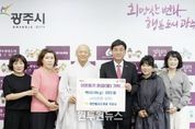 (원투원뉴스) 대한불교 조계종 국청사는 지난 29일 추석을 앞두고 지역 내 어려운 이웃을 돕기 위해 백미 300포(4㎏, 435만 원 상당)를 광주시에 기탁했다. 이날 기탁식에는 주지 서호 스님을 비롯한 국청사 관계자들이 참석했으며 전달된 백미는 광주시를 통해 지역 내 저소득층과 복지 사각지대 가구에 고루 배분될 예정이다. 서호 주지 스님은 “작은 정성이지만 이 쌀이 명절을 맞이한 어려운 이웃들에게 따뜻한 힘이 되길 바란다”며 “앞으로도 지역사회와 함께 나눔을 실천하는 국청사가 되겠다”고 밝혔다. 이에 대해 방세환 시장은 “추석을 맞아 따뜻한 마음을 나눠주신 국청사에 깊이 감사드린다”며 “기탁받은 백미는 꼭 필요한 분들에게 소중히 전달하겠다”고 말했다. 한편, 국청사는 지난 4월에도 백미 400포(4㎏)를 광주시에 기탁하는 등 꾸준한 이웃사랑을 실천하며 지역사회에 귀감이 되고 있다.