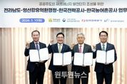 (원투원뉴스) 전라남도는 10일 한국전력공사 회의실에서 한국전력, 한국농어촌공사, 영산강유역환경청과 공공 주도 재생에너지 발전단지 조성과 안정적 전력 공급을 위한 업무협약을 했다. 협약식에는 강위원 전남도 경제부지사, 김동철 한국전력 사장, 김인중 한국농어촌공사 사장, 김영식 영산강유역환경청장 직무대리 등 관계자가 참석했다. 협약은 기존 민간 주도 개발 방식에서 벗어나 입지 발굴부터 계통 연계, 환경 보전, 주민 수용성 확보까지 모든 과정에서 공공기관이 협력해 재생에너지 발전단지를 조성하기 위한 것이다. 전남도는 사업 발굴과 계획 수립, 주민 수용성 확보 등 행정 지원을 맡고, 영산강유역환경청은 규제와 제도 개선 지원, 환경성을 고려한 전력망 확충 지원 등에 나서며, 한국전력은 재생에너지 안정적 공급을 위한 변전소와 송전선로 적기 건설을 추진하고, 한국농어촌공사는 농업기반시설을 활용한 단지 조성을 지원하는데 협력하기로 했다. 전남은 풍부한 재생에너지 자원을 보유하고 있음에도 계통 접속, 대규모 부지 확보, 환경성 검토 등 풀어야 할 과제가 많다. 또한 그동안 재생에너지 발전이 민간 주도로 추진되면서