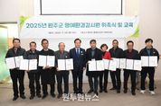 (원투원뉴스) 완주군이 늘어나는 환경 민원과 도시화로 인한 오염 예방을 강화하기 위해 28일 ‘명예환경감시원 위촉식 및 교육’을 실시했다. 완주군청 중앙도서관 3층 다목적강당에서 열린 행사에는 명예환경감시원과 환경위생과 직원 70여 명이 참석해 신규 위촉식과 전북녹색환경지원센터와 연계한 환경감시 교육이 진행됐다. 명예환경감시원은 읍·면별 4~5명씩 총 56명이 위촉됐으며, 이들은 환경오염행위 감시, 주민 계도, 순찰 등 사전 예방 활동을 맡게 된다. 이장협의회장, 주민자치위원장, 공동주택 입주자대표 등 지역 리더들이 참여해 책임성과 대표성을 강화했다. 인구 10만 명을 넘어서며 도시민 유입이 늘고 있는 완주군은 축사 악취, 대기오염 등 도시화에 따른 환경 민감도가 높아 자율적 환경 감시와 신속한 민원 대응의 중요성이 커지고 있다. 유희태 완주군수는 “군민의 삶의 질 향상을 위해 축사 매입, 악취방지시설 설치 등 환경오염 방지에 최선을 다하고 있다”며 “명예환경감시원들이 지역의 환경지킴이라는 자부심을 가지고 환경감시와 주민 계도 활동 등 맡은 역할을 충실히 해주시길 바란다”고 말했다.