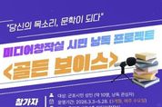 (원투원뉴스) 군포시 중앙도서관은 시민이 직접 참여하는 낭독 콘텐츠 제작을 통해 공공 문화콘텐츠를 확산하고, 시민의 창작 경험을 지원하기 위해 미디어창작실 시민 낭독 프로젝트 '골든 보이스'를 운영한다. '골든 보이스'는 시민이 직접 문학 작품이나 개인 창작물을 낭독하고 이를 도서관 미디어창작실에서 전문 장비를 활용해 녹음·편집하여 오디오북 콘텐츠로 제작·공개하는 프로그램이다. 이번 프로젝트는 단순한 낭독 체험을 넘어 기존 활자에 국한됐던 작품을 시민의 목소리로 직접 듣고 나누는 참여형 프로그램으로 마련됐다. 낭독 경험이 많지 않더라도 문학과 낭독에 관심이 있는 시민이라면 누구나 참여할 수 있다. 프로그램은 2026년 3월 3일부터 5월 28일까지 중앙도서관 1층 미디어창작실에서 운영하며 참여 대상은 군포시 성인 10명 내외이다. 낭독 자료는 참여자의 개인 창작물(에세이, 시 등) 또는 저작권 보호기간이 만료된 한국 문학 작품을 활용한다. 참여 신청은 2026년 1월 26일부터 2월 20일까지 군포시 도서관 누리집을 통해 온라인으로 접수하며 선정된 참여자들은 단체 소통 채널을 개설해 약 3개월간 낭