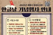 (원투원뉴스) 세종특별자치시 공공도서관이 제579돌 한글날을 기념해 오는 10월 한 달간 한글의 소중함을 되새기고 한글을 즐겁게 체험할 수 있는 다양한 기념행사를 운영한다. 이번 행사는 세종시립도서관을 비롯한 생활권별 공공도서관 15곳에서 진행되며, 시민 누구나 참여할 수 있다. 시립도서관에서는 ▲한글학회 기증도서 전시 ▲한글날 기념 책추천(북큐레이션) ▲청소년 문해력 교실이 진행된다. 생활권별 도서관에서는 한글을 주제로 한 다양한 체험 프로그램이 준비되어 있다. 1·6생활권에서는 ▲모래로 피어나는 훈민정음(샌드아트) ▲한글 몬스터 작가와의 만남, 2생활권에서는 ▲가로세로 한글 맞추기, 3·4생활권에서는 ▲알쏭달쏭 한글 퀴즈 등을 운영한다. 프로그램 운영 일시와 개최 장소 등 자세한 사항은 시 통합도서관 누리집에서 확인하면 된다. 세종시립도서관 관계자는 “이번 행사를 통해 시민들이 한글의 소중함을 되새기고, 아이들은 한글을 즐겁게 배우고 체험하는 기회가 되길 바란다”며 “한글날을 기념해 마련된 이번 행사에 세종시민 여러분의 많은 관심과 참여를 바란다”고 말했다.