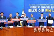 (원투원뉴스) 전라남도는 19일 국회에서 지역 현안 해결과 인공태양 연구시설 유치를 위해 ‘전남 국회의원-전남도 정책협의회’를 개최하고, 이어 광주 국회의원들과도 공동결의문을 발표하며 한목소리로 유치 결의를 다졌다고 밝혔다. 전남도는 이날 김영록 도지사, 김원이 민주당 전남도당위원장, 신정훈 국회 행정안전위원장, 박지원·이개호·조계원·김문수·권향엽 국회의원과 윤병태 나주시장 등이 참석한 가운데 국회 민주당 원내대표 회의실에서 ‘인공태양 연구시설 전남 나주 유치 전남 국회의원 공동결의문’을 발표했다. 오후에는 광주를 지역구로 둔 안도걸·전진숙·정준호 국회의원과 국회 소통관에서 공동결의문을 발표, 인공태양 연구시설 유치 노력에 힘을 실었다. 이들은 공동결의문에서 “나주는 안정적 부지 여건, 우수한 정주환경, 한국전력·한국에너지공대 등 세계적 에너지 인프라가 집적된 최적의 입지”라고 강조했다. 또한 국가 연구개발(R&D) 사업이 일부 지역에 집중된 현실을 지적하며 “인공태양 연구시설의 전남 구축은 진정한 국가균형성장과 과학기술진흥의 출발점”이라며 “연구시설이 나주에 유치되도록 전남·광주의 모든 역량을 결집하겠다”고 뜻을 모았다.
