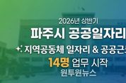 (원투원뉴스) 파주시가 올해 상반기 지역공동체 일자리사업을 3일부터 시작했다. 최종 선발된 사업 참여자들은 이날 각자 배정된 일터로 첫 출근했다. 지역공동체 일자리사업은 실직 상태이거나 정기소득이 없는 18세 이상 파주시민을 대상으로 하며, 지역 자원을 활용하거나 현안을 반영한 일자리를 발굴해 지역공동체 형성에 보탬을 주기 위한 일자리 사업이다. 시는 이번 지역공동체 일자리사업으로 ▲청년 일자리사업 ▲주말농장 환경 정비 ▲촘촘보조교사 등 3개 사업을 추진하여 11명을 선발했으며, 시급한 현안에 대응하기 위해 추가로 선발한 공공근로사업 참여자 3명까지 총 14명을 선발했다. 이번 참여자들은 이달 3일부터 6월 24일까지 약 4개월간 근무하게 된다. 이이구 민생경제과장은 “공공근로사업이 단순한 재정 지원 일자리를 넘어 안정적인 일자리를 찾아가기 위한 마중물이 될 수 있도록 노력해 나가겠다”라고 말했다. 한편 시는 이달 중순경 '2026년도 2단계 공공근로사업’참여자를 모집할 예정이며, 자세한 사항은 파주시청 누리집을 참고하면 된다.