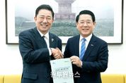 (원투원뉴스) 김영록 전남도지사는 19일 국회에서 김병기 더불어민주당 원내대표와 한병도 국회 예결위원장을 잇따라 만나 전남 핵심 현안의 필요성 설명하고 2026년 국비 증액 반영을 위해 적극적인 지원을 요청했다. 이날 국고 확보 활동은 2026년 예산심사와 주요 법률 논의가 본격화되는 시기에 전남의 미래가 걸린 핵심 사업을 반영하기 위해 전략적으로 이뤄졌다. 김영록 지사는 “지금이 전남의 미래 성장동력을 국가정책에 담아낼 골든타임”이라며 절박함을 전했다. 김병기 원대대표를 만난 자리에선 ▲세계적 인기를 누리는 김 산업을 체계적으로 육성하기 위한 ‘국립 김산업진흥원’ 설립 ▲전국 유일 의대 없는 전남의 의료공백 해소를 위한 통합대학교 국립의대 2027학년도 정원 배정 ▲재생에너지 기반 RE100산단과 배후도시를 조성하기 위한 ‘재생에너지자립도시 특별법’ 연내 제정 ▲여수 석유화학·광양 철강산업의 구조전환을 지원하기 위한 ‘석유화학·철강산업 특별법’ 제정 ▲전남이 에너지 대전환을 선도하기 위해 필요한 권한과 특례를 담은 ‘전남 에너지·해양 특화도시 특별법’ 제정 등을 건의했다. 김영록 지사는 “전남은