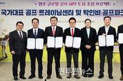(원투원뉴스) 경상북도는 3월 17일 경북도청에서 ‘영주 국가대표 골프 트레이닝 센터 및 박인비 골프파크 조성사업을 위한 업무협약’을 체결하고 ‘영주 글로벌 골프 허브 도시 조성 프로젝트’를 본격 가동한다. 이날 협약식에는 이철우 경상북도지사를 비롯해 박성만 경상북도의장, 엄태현 영주부시장, 장상진 와우매니지먼트 대표, 프로골퍼 박인비, 김택수 대한체육회 진천선수촌장 등이 참석했다. ◈ 국가대표 트레이닝 센터와 국제대회 가능 27홀 대중제 골프장 단지 추진 이번 사업은 총사업비 1,500억 원이 투입되어 영주시 장수면 두전리 일원 43만평 부지에 국가대표 트레이닝 센터와 27홀의 대중제 골프장을 건립한다. 43만평의 부지에는 골프 인재 육성의 요람이 될 ▲국가대표·유소년 골프 트레이닝 센터 및 ▲스포츠 과학 지원시설, ▲국제대회가 가능한 27홀 규모의 대중제 골프장, ▲박인비 프로의 상징성을 담은 박인비 골프 박물관과 전문 아카데미가 건립되어 연간 약 50만 명 이상의 관광객 방문이 예상된다. 아울러, ▲400실 규모의 호텔 등 체류형 숙박시설과 ▲지역 특산물 판매시설, ▲캠핑장, ▲놀이시설 등 지