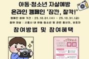 (원투원뉴스) 시흥시자살예방센터는 오는 10월 1일부터 31일까지 한 달간 아동ㆍ청소년을 대상으로 생명존중 인식 확산 캠페인을 운영한다. 이번 캠페인은 아동ㆍ청소년이 심리적 지지를 얻고 생명의 소중함을 되새기도록 돕는 한편, 이를 누리소통망(SNS)을 통해 또래와 나눌 수 있도록 마련됐다. 캠페인 참여 방법은 시흥시 관내 교육기관, 행정복지센터, 아동ㆍ청소년 관련 기관 등에 부착된 자살 예방 홍보 스티커를 촬영한 후, 개인 누리소통망(인스타그램)에 스토리 또는 게시물 형태로 올리면 된다. 이후 해당 게시물을 캡처해 정보무늬(큐알코드)를 통해 연결된 네이버 폼에 제출하면 참여가 완료된다. 이기연 시흥시자살예방센터장은 “이번 캠페인이 아동ㆍ청소년들이 온라인 공간에서 자신과 친구들의 소중함을 되돌아보는 계기가 되길 바란다”라며 “많은 청소년이 적극적으로 동참해 건강한 생명존중 문화가 확산하길 기대한다”라고 말했다.