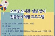 (원투원뉴스) 동두천시 도서문화사업소는 설날을 맞아 오르빛도서관에서 유아를 동반한 가족과 저연령 청소년을 대상으로 ‘설날 맞이 전통놀이 체험 프로그램’을 2월 4일 운영한다. 프로그램 참여 신청은 동두천시 도서관 홈페이지를 통해 선착순으로 접수하며, 신청 기간은 1월 22일부터 2월 1일까지다. 이번 프로그램은 가족이 함께 참여하며 세대 간 소통의 폭을 넓히고, 설 명절의 의미와 전통문화를 자연스럽게 체험할 수 있도록 기획됐다. 설날 관련 그림책 자유독서를 비롯해 만들기 키트를 활용한 윷놀이와 통통놀이 제작 및 게임 체험, 전통놀이 선생님과 함께하는 투호 등 체험 중심의 다채로운 프로그램으로 운영될 예정이다. 동두천시 도서문화사업소장은 “민족 최대의 명절인 설날을 맞아 어린이와 청소년이 전통문화를 놀이로 즐길 수 있도록 프로그램을 마련했다”라며 “가족이 함께 참여해 뜻깊은 명절 추억을 만들길 기대한다”라고 말했다. 프로그램과 관련한 자세한 사항은 동두천시 도서관 홈페이지에서 확인할 수 있다.