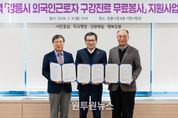 (원투원뉴스) 강릉시는 9일 오전 10시 (사)한국구라봉사회, 외국인근로자지원센터와 함께 ⌜외국인근로자 구강진료 무료봉사 지원사업⌟ 추진을 위한 업무협약을 체결한다. 이날 협약식에는 김홍규 강릉시장을 비롯해 한충일 (사)한국구라봉사회 회장, 최길영 강릉시외국인근로자지원센터 대표, 사업관계자 및 관계 공무원 등이 참석했으며, 의료사각지대에 놓인 외국인근로자의 구강 건강증진과 구강건강 불평등 해소를 위해 상호 협력하기로 뜻을 모았다. 이번 사업추진을 위해 옥천마을건강센터(옥천동 어울림플랫폼 소재) 내에 구강진료실을 설치하고, 이를 거점으로 외국인근로자를 대상으로 정기적인 무료 구강진료 봉사활동을 추진하는 한편, 지역사회와 연계해 의료 접근성이 낮은 지역 취약계층 주민을 대상으로 예방 중심의 구강건강 프로그램도 함께 운영할 계획이다. 김홍규 강릉시장은 “이번 업무협약은 민관이 협력해 외국인근로자와 지역 취약계층 주민에게 실질적인 구강보건 서비스를 제공하는 계기가 될 것”이라며, “앞으로도 지속 가능한 구강보건 서비스 체계를 구축해 지역 내 건강 격차 완화에 기여하겠다.”라고 말했다.
