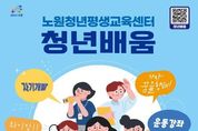 (원투원뉴스) 서울 노원구가 청년들을 위한 평생학습센터 '청년 배움'을 개소한다고 밝혔다. 구는 그간 청년들의 평생학습 기회 확대를 위해 한국성서대학교와 협력해 ‘다 담다’ 프로젝트를 운영해 왔다. 이를 통해 쌓은 경험과 성과를 바탕으로, 보다 안정적이고 지속적인 교육 제공을 위해 ‘청년 배움’을 개소하고, 구 직영으로 운영한다. ‘청년 배움’은 지난 8월 시범운영을 시작해 10월 1일 정식 개관했다. 운영 시간은 평일 오전 10시부터 오후 8시까지, 토요일은 오전 10시부터 오후 5시까지이며, 일요일과 공휴일은 휴관한다. 시범운영 기간동안 ‘청년 맞춤 발성훈련 클래스’, ‘바른자세 만들기 SNPE’, ‘몸과 마음 힐링 스트레칭’ 등 프로그램이 운영됐으며, 모든 강좌가 접수 당일 마감되는 등 높은 호응을 얻었다. 정식 개관 후 프로그램은 취업 및 실생활에 밀접하게 연관된 4개 영역 27개 과정으로 구성됐다. ‘청년 실전 up’ 영역에서는 ▲커뮤니케이션 및 면접 스피치 ▲브이로그 콘텐츠 기획 ▲소비 습관 진단 ▲브랜딩 스토리 등 7개 실전형 프로그램이 운영된다. ‘청년 마음 up’은 ▲감