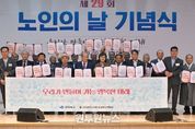 (원투원뉴스) 경상북도는 30일 경북여성가족플라자 대강당에서 대한노인회 경북연합회 주관으로 ‘제29회 노인의 날’ 기념식을 성황리에 개최했다. 정부는 지난 1997년 어르신에 대한 사회적 관심과 공경의식을 높이기 위하여 매년 10월 2일을 노인의 날로, 매년 10월을 경로의 달로 제정하여 중앙 및 지역별로 기념식을 개최해 오고 있다. 이날 기념식은 식전 공연, 개회식, 청려장 전달, 유공자 표창 순으로 진행됐고, 양금희 경제부지사를 비ㅊ롯해 배진석 도의회 부의장, 양재경 대한노인회 경북연합회장 등 지역기관·단체장과 수상자를 포함하여 300여 명이 참석하여 자리를 빛냈다. 이날 행사에는 그간 지역사회에서 노인복지 증진을 위해 헌신해 온 공무원 및 개인 유공자 6명에 대한 도지사 표창이 수여됐다. 한편, 올해 100세를 맞으신 문경시 김금순 어르신에게 건강과 장수를 기원하는 대통령 선물인 청려장(장수지팡이)을 대표로 전달하고, 나머지 198명의 100세 어르신(남30, 여168)에게는 각 시군을 통해 전수될 예정이다. 청려장은 통일신라와 조선시대에 장수를 기원하며 나라에서 하사하던 전통에서
