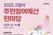 (원투원뉴스) 고양특례시는 오는 10월 14일 오후 3시 30분, 일산호수공원 고양꽃전시관(북카페)에서 ‘2025년 고양특례시 주민참여예산 한마당’을 개최한다고 밝혔다. 주민참여예산제는 예산 과정에 시민이 직접 참여함으로써 지역의 주인 의식을 높이고 재정민주주의를 실현하는 중요한 제도다. 시는 지난해 7월부터 올해 6월 말까지 온오프라인을 통해 총 250건의 주민 제안사업을 접수받았다. 이후 소관 부서의 검토와 주민참여예산위원회의 심사를 거쳐 온라인 시민투표를 실시하고 그 결과를 이번 행사에서 공개할 예정이다. 현재 고양시청 누리집(홈페이지)에서는 2026년도 주민참여예산 제안사업에 대한 사전 온라인 시민투표(9.26.~10.8.)가 진행 중이다. 이번 행사에서는 2025년도 주민참여예산으로 반영돼 실제로 실행된 사업 중 우수 실행사례도 함께 소개된다. 주민참여예산의 의미를 시민들과 다시 공유하고, 향후 제도의 발전 방향을 함께 모색하는 자리가 될 예정이다. 행사에서 결정된 제안사업 우선순위는 오는 10월 중 ‘주민참여예산 조정협의회’심의를 거쳐 2026년도 고양시 예산안에 최종 반영되