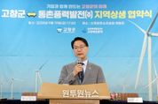 (원투원뉴스) 고창군과 동촌풍력발전㈜(대표 오희종)이 19일 오후 신재효 판소리공원 체험관에서 에너지 개발의 이익공유 등을 위한 ‘고창해상풍력 발전사업 지역상생 협약식’을 열었다. 심덕섭 고창군수, 조민규 고창군의회 군의장 및 군의원, 오희종 동촌풍력발전대표 등 관계자와 지역주민이 참석해 해상풍력 발전사업의 원활한 추진과 지역 상생 발전을 위한 협력을 다짐했다. 협약은 ▲주민 참여형 사업 추진 ▲지역 인력 및 장비·자재 우선 활용 ▲수산자원 보호 및 지역사회 공익활동 참여 등 지역 상생발전을 위한 내용으로 구성됐다. 고창군은 행정적 지원을, 동촌풍력발전㈜은 사업 총괄과 지역 기여를 책임지며 상호 협력할 예정이다. 이번 협약을 통해 고창군은 친환경 에너지 확산과 지역 발전이라는 두 가지 목표를 동시에 달성할 수 있는 발판을 마련하게 됐다. 오희종 동촌풍력발전㈜ 대표도 “고창군과 함께 지역과 기업이 동반 성장하는 모범적 사례를 만들겠다”며 “주민 참여와 지역사회 기여를 적극 실천하겠다”고 말했다. 심덕섭 고창군수는 “이번 협약은 단순한 에너지 개발을 넘어 군민과 함께하는 지속가능한 발전을