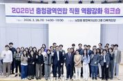 (원투원뉴스) 충청광역연합이 4개 시·도(대전·세종·충북·충남) 파견 직원들의 정책 이해도를 높이고 조직 결속력을 다지기 위한 본격적인 역량 강화 행보에 나섰다. 충청광역연합은 3월 26일 보람동 행복누림터에서 전 직원을 대상으로 ‘2026년 충청광역연합 직원 역량강화 워크숍’을 개최했다고 밝혔다. 이번 워크숍은 연합 직원들이 연합의 설립 취지와 주요 정책을 빠르게 숙지하고 향후 충청권 행정환경 변화에 능동적으로 대응할 수 있도록 마련됐다. 이날 워크숍에서는 최민호 충청광역연합장이 직접 강사로 나서 ‘행정환경에 따른 연합의 역할’을 주제로 특강을 진행했다. 최 연합장은 특강을 통해 초광역 협력체의 필요성을 강조하며, 충청권의 공동 번영을 위한 직원들의 사명감과 역할을 당부했다. 특히, 현대의 시대정신이 ‘에너지 확보, 기술 인력 양성, 기업 우호적 환경 조성, 물관리’임을 강조하며, 시대정신을 반영한 정책을 구상하고 추진하는 것이 공직자에게 필요한 자세라고 힘주어 말했다. 이어지는 강의에서는 대전연구원 염인섭 책임연구위원이 ‘연합의 출범 배경 및 역사, 주요 정책’을 주제로 심도 있는 강의를 진행해