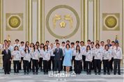 (원투원뉴스) 이재명 대통령은 5일 오후 2026 밀라노-코르티나 동계올림픽에 참가했던 대한민국 국가대표 선수단을 초청해 격려 오찬을 가졌다. 오늘 자리는 새 정부 출범 후 처음으로 치러진 올림픽대회에서 ‘한계를 뛰어넘은 도전’을 보여준 대한민국 국가대표 선수단에게 국민을 대표해서 감사를 전하는 자리였다. 이번 오찬에는 자신의 기록을 경신하거나, 스스로 한계를 극복해 국민께 감동을 준 국가대표 선수단과 지도자들, 정부 관계자와 종목 단체장 그리고 대회 기간 현지에서 선수들에게 따뜻한 식사를 제공했던 급식지원센터 조리사 등 100여 명이 초청됐다. 특히 대한민국 설상종목 첫 금메달리스트인 최가온 선수와 역대 최다 올림픽메달리스트인 최민정 선수, 이번 대회 MVP로 선정된 김길리 선수, 척추 부상을 극복하고 올림픽에 출전한 정승기 선수 등 각자의 스토리를 가진 선수들이 함께 했다. 이재명 대통령은 격려사를 통해 “여러분들이 대한민국의 자부심”이라면서 “선수들 덕분에 우리 국민들도 어려운 환경 속에서 힘을 얻고 희망을 노래할 수 있었다”고 감사를 표했다. 이어 “국가대표 선수 한 분 한 분이 모두 국민