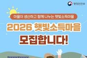 (원투원뉴스) 마을이 생산하고 함께 나누는 햇빛소득마을 2026 햇빛소득마을 모집합니다! 마을 주민들이 직접 태양광 발전소를 운영하며 수익을 창출하고, 이를 마을 복지와 주민 소득으로 환원하는 에너지 자립 모델인 '햇빛소득마을' 사업이 전국적으로 확대됩니다. 주요 내용 ① ■ 모집 및 신청 일정 - 1차 모집기간: 2026.3.31.(화)~5.31.(일) - 2차 모집기간: 2026.3.31.(화)~7.31.(금) · 공모대상: 마을에서 태양광 발전 사업을 하려는 마을 공동체(협동조합 또는 사회적협동조합) · 지원규모: 500개 이상 ※ 사업여건에 따라 변동 가능 · 신청방법: 마을 공동체에서 사업계획서 작성 → 기초 지방정부(시·군)가 공문으로 제출 · 문의: 각 시·군 햇빛소득마을 접수부처 · 결과발표: 기초 지방정부(시·군)를 통해 통보 - 1차 발표: 2026.7.31.(금) 예정 - 2차 발표: 2026.9.30.(수) 예정 자세한 내용은 행정안전부 누리집에 게시된 사업 공고문에서 확인할 수 있으며, 햇빛소득마을 추진단은 공모기