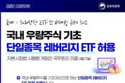 (원투원뉴스) 국내 - 해외상장 ETF 간 비대칭 규제 해소 ■ 국내 우량주식 기초 단일종목 레버리지 ETF 허용 - 자본시장법 시행령 개정안 국무회의 의결(4월 21일) · 국내 우량주식을 기초자산으로 하는 단일종목 레버리지 ETF 등을 허용합니다. - 이르면 5월 22일부터 상장 예정 - 시가총액, 거래량, 파생시장의 안정성 등이 충분한 국내 우량주식 기초 · 커버드콜 등 다양한 ETF를 개발합니다. - 개별주식 위클리옵션(6월 29일), ETF 위클리옵션(하반기) 등 신규 옵션상품 상장 예정 · 일반 레버리지 ETF·ETN보다 리스크가 높은 점을 감안하여 투자자 보호를 한층 강화합니다. - 추가적인 심화 사전교육 신설(기본 1시간+ 심화 1시간 수강), 기본예탁금(1천만 원), 상품 표기 명확화(ETF 명칭 사용 제한) 등 일반 ETF 상품 대비 손실가능성이 높은 상품인 만큼, 숙련된 투자자가 자기 책임 하에 건전하게 투자할 것을 권고드립니다.
