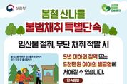 (원투원뉴스) ■ 봄철 산나물 불법채취 특별단속 임산물 절취, 무단 채취 적발 시 5년 이하의 징역 또는 5천만 원 이하의 벌금형에 처해질 수 있습니다. 불법으로 채취한 임산물은 현장에서 모두 압수 및 몰수합니다. · 산림사법경찰 현장 투입 · 드론 · 감시 카메라 소중한 산림, 함께 보호합시다!